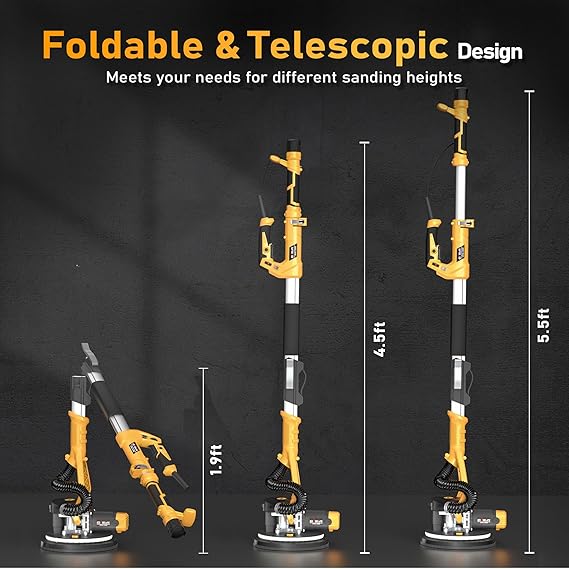 - 【Engineered for Every Angle】Designed for maximum flexibility, our drywall sander features a 360° rotating sanding disc, a 120° pivoting pole, and a detachable base for easy access to tight corners and edges. The built-in 360° LED light enhances visibility in low-light conditions. Ideal for both DIYers and professionals.